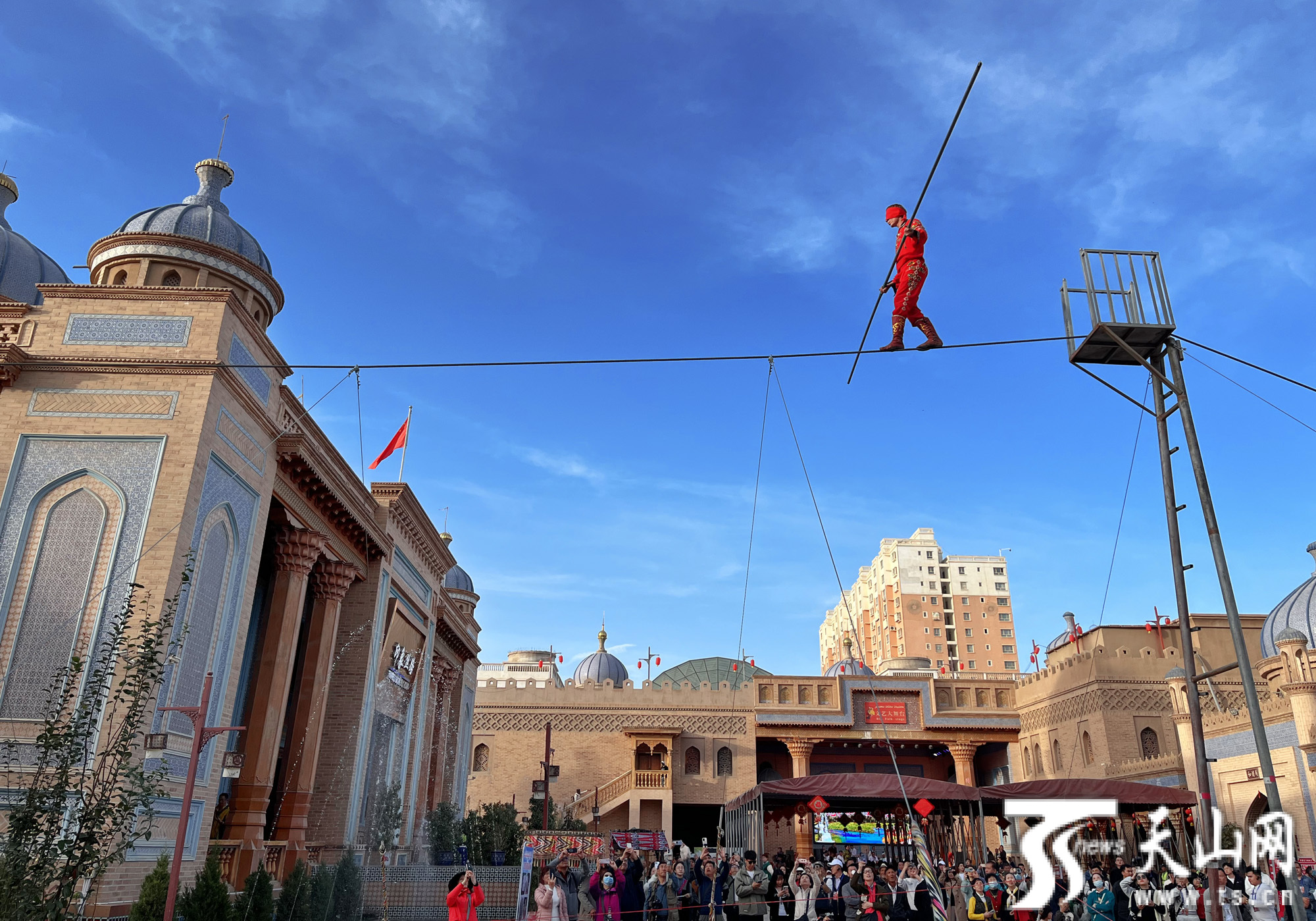 10月23日,游客在莎車縣非物質(zhì)文化遺產(chǎn)博覽園觀看達(dá)瓦孜表演。近年來,莎車縣深入挖掘利用當(dāng)?shù)胤俏镔|(zhì)文化遺產(chǎn),實(shí)現(xiàn)非遺傳承保護(hù)與文旅融合發(fā)展有效結(jié)合。 天山網(wǎng)-新疆日報(bào)記者約提克爾·尼加提攝
