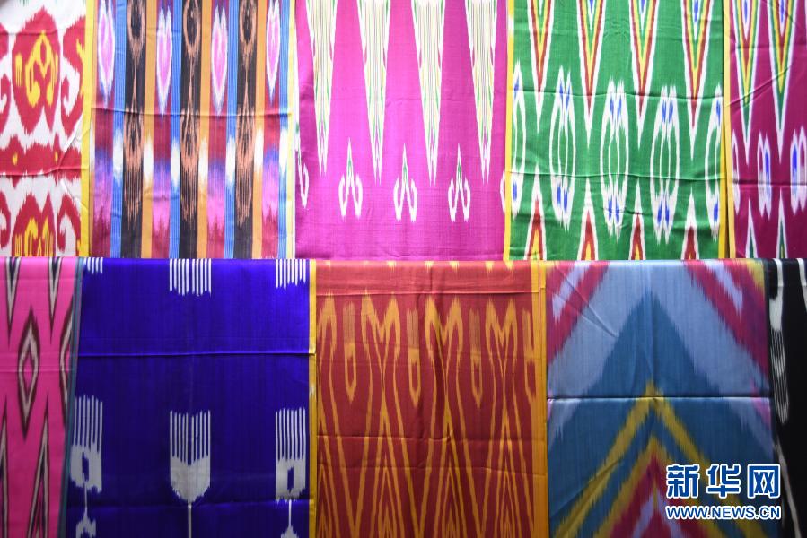 這是各種花紋的艾德萊斯綢。新華社記者張曉龍 攝