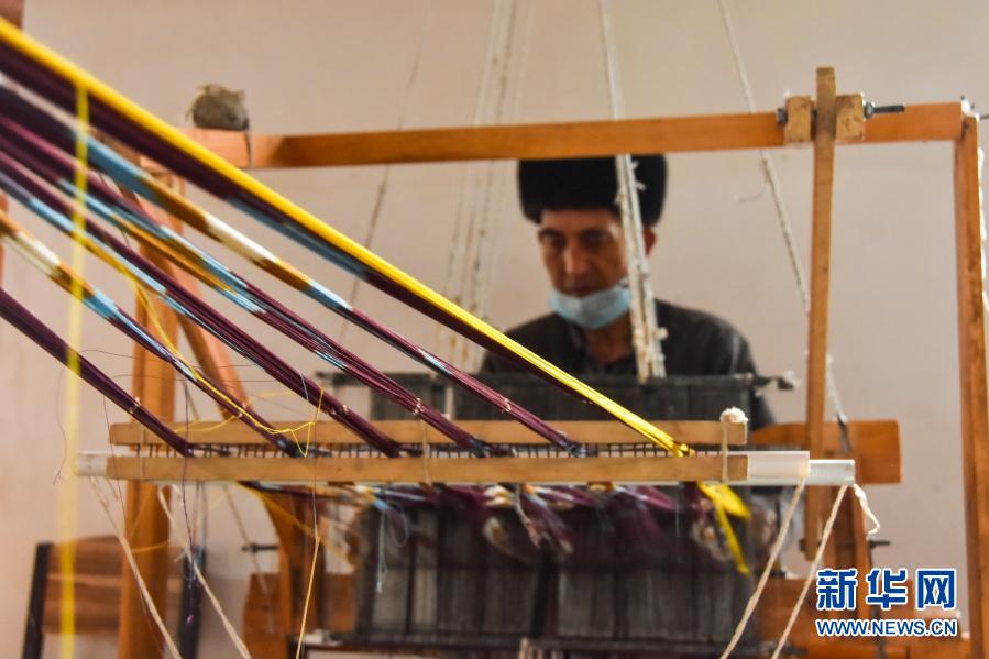 這是工作中的艾德萊斯綢織機(jī)。新華社記者張曉龍 攝