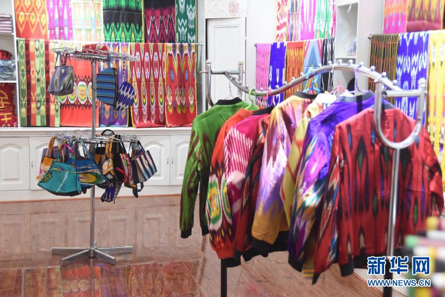 這是貨架上的艾德萊斯綢。新華社記者張曉龍 攝