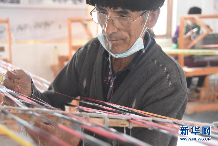 這是正在接絲線的艾德萊斯綢工匠艾麥爾·艾力。 新華社記者張曉龍 攝