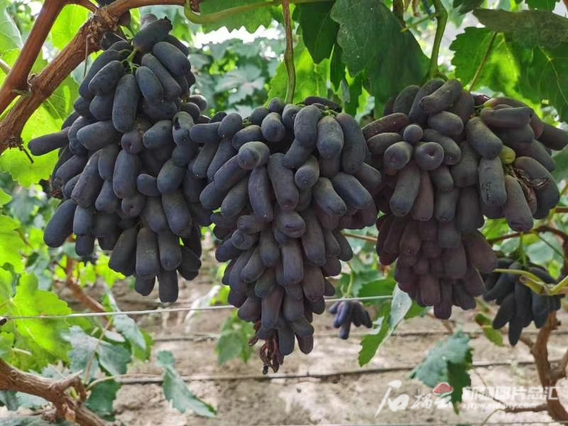 和田縣經(jīng)濟(jì)新區(qū)特色水果種植農(nóng)民專業(yè)合作社葡萄大棚里的“美人指”葡萄成熟。蔡國(guó)太供圖