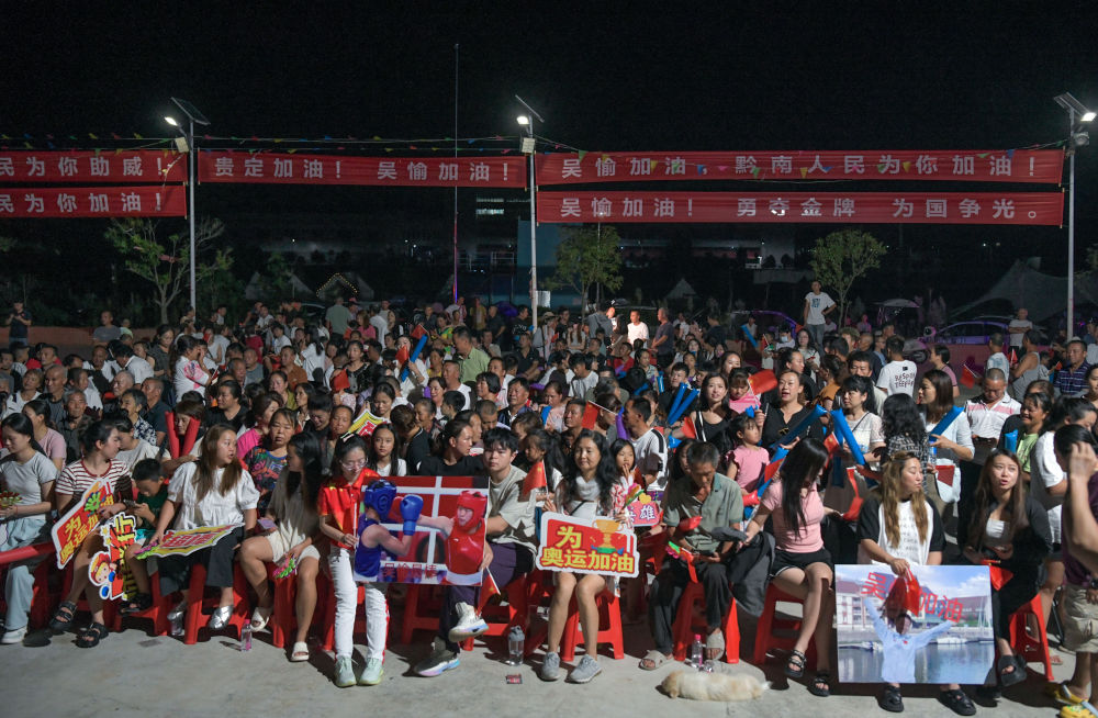 吳愉出生于貴州省黔南布依族苗族自治州貴定縣昌明鎮(zhèn)。從8月9日晚至10日凌晨,吳愉家鄉(xiāng)的父老鄉(xiāng)親們齊聚昌明鎮(zhèn)文江村籃球場,收看電視直播,一起見證吳愉在巴黎奧運會上奪冠的高光時刻。