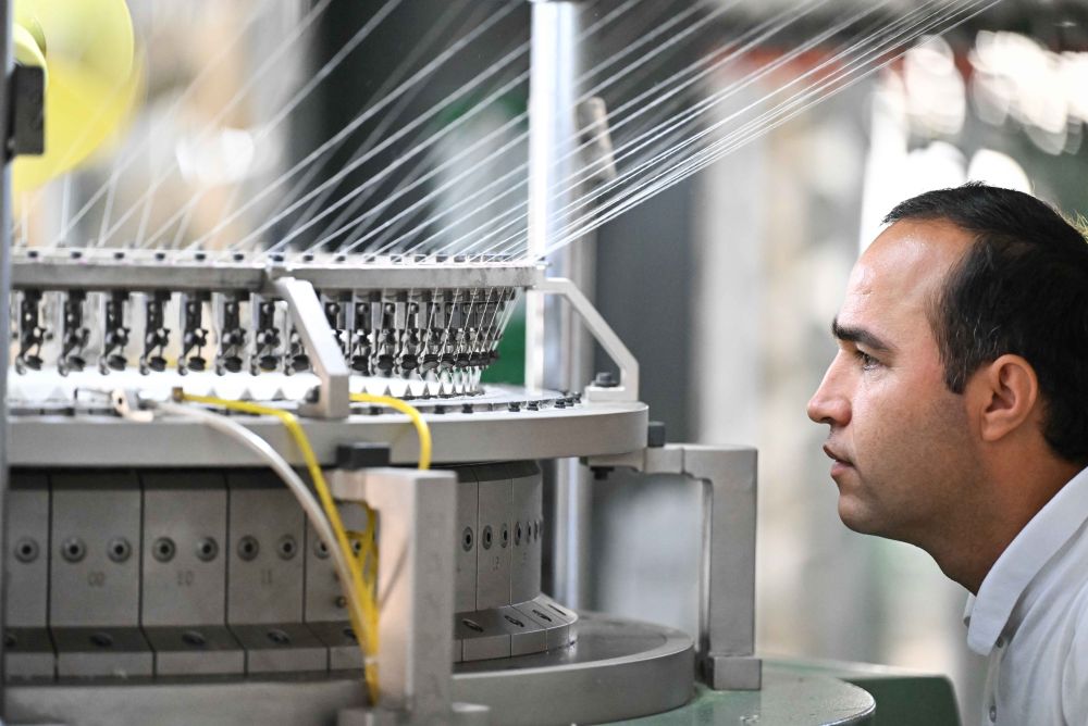 一名中方員工在中塔合作項(xiàng)目丹加拉農(nóng)業(yè)紡織產(chǎn)業(yè)園的紡紗二車間工作。