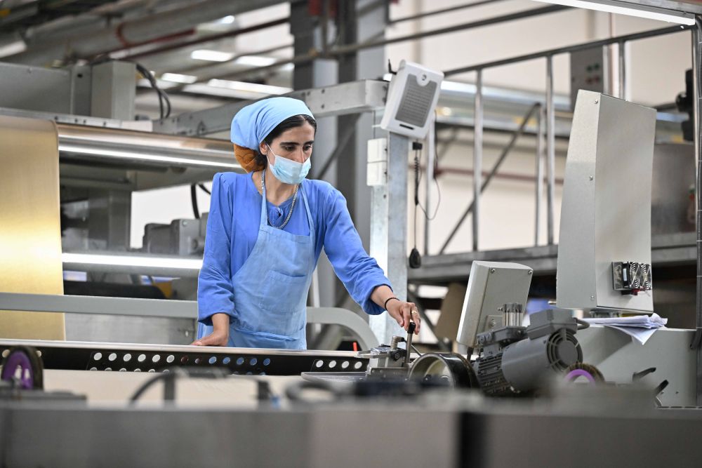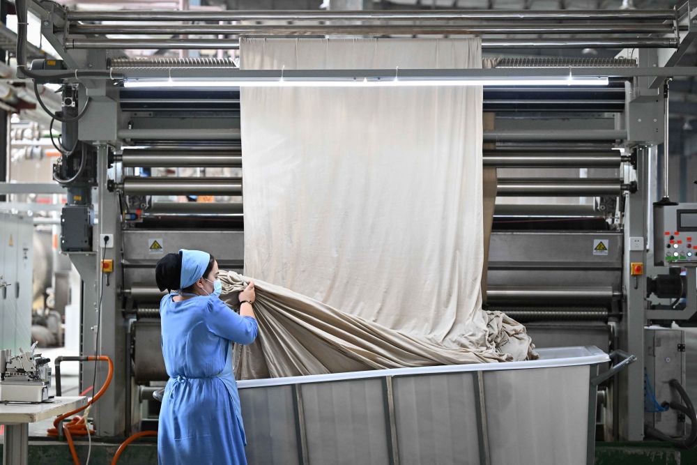 塔方員工在中塔合作項(xiàng)目丹加拉農(nóng)業(yè)紡織產(chǎn)業(yè)園的印染車間工作。