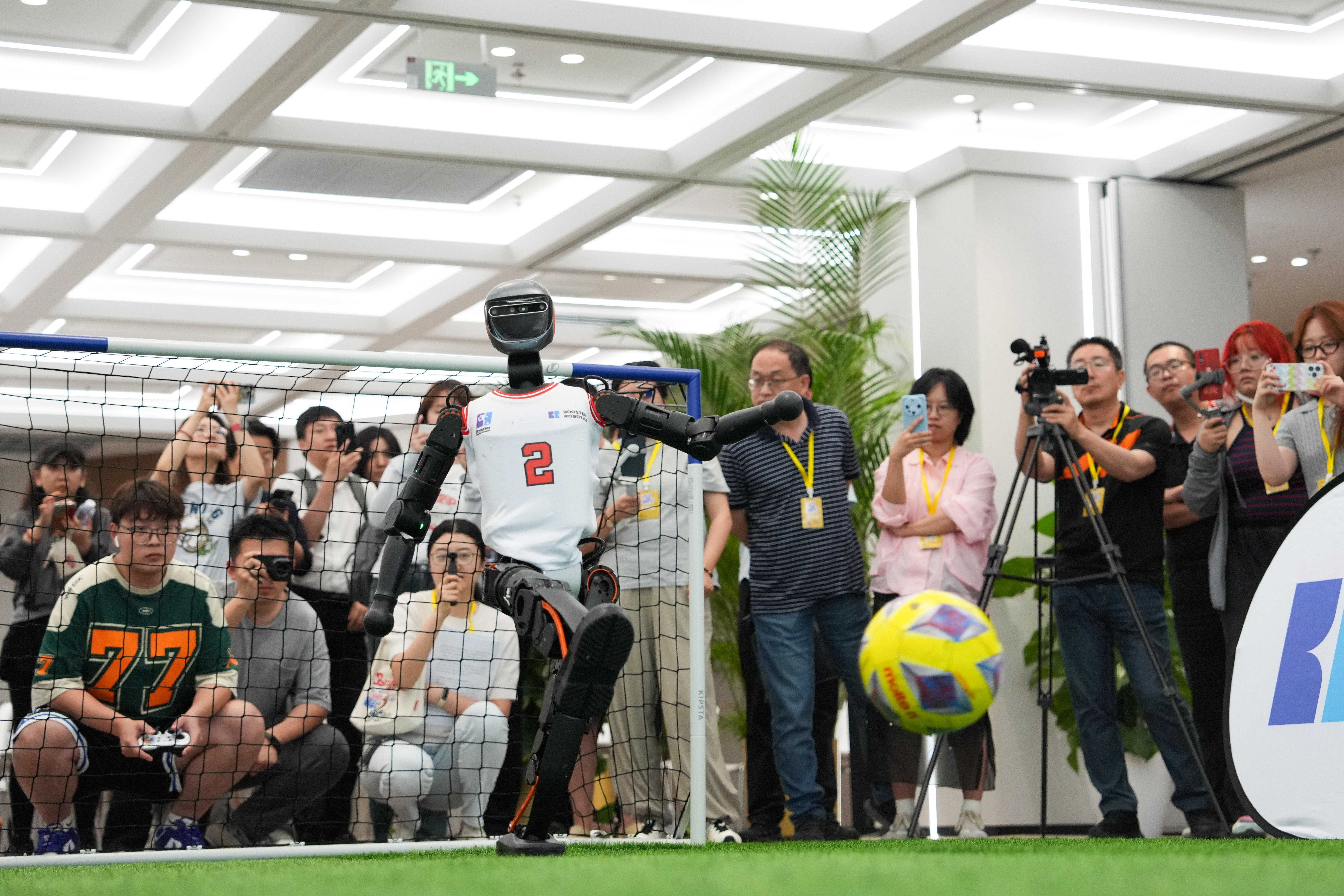 在北京市機器人產業(yè)園(亦莊)的“機器人大世界”前,“活力中國調研行”記者團最新觀看了一場趣味足球賽,比賽雙方是來自北京加速進化公司的人形機器人。正是這款機器人,讓中國團隊在今年3月的RoboCup機器人世界杯德國公開賽上奪得冠軍。