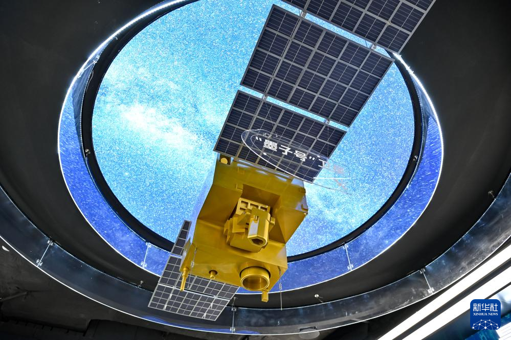 這是在中電信量子信息科技集團(tuán)有限公司的科技體驗(yàn)館內(nèi)拍攝的“墨子號(hào)”量子衛(wèi)星模型(7月1日攝)。新華社記者 張鋮 攝