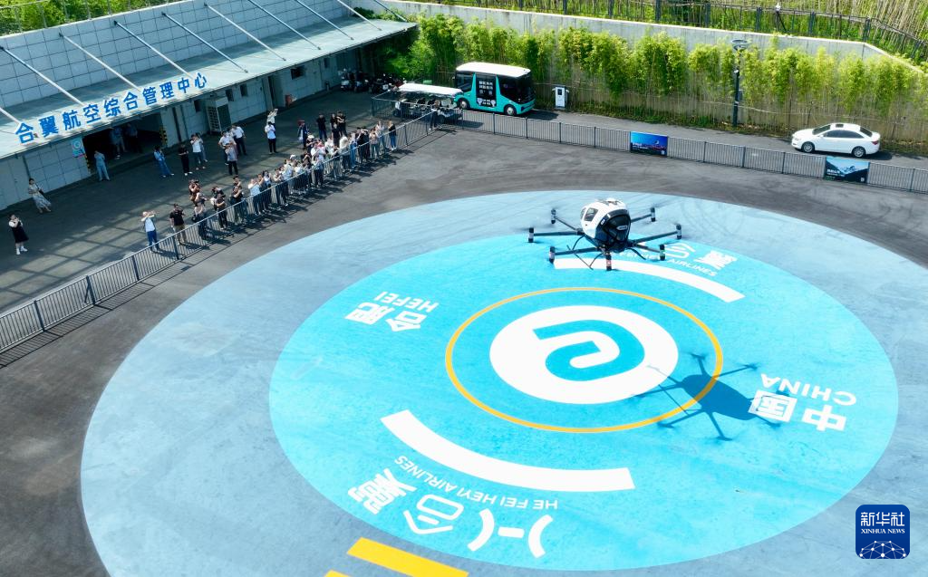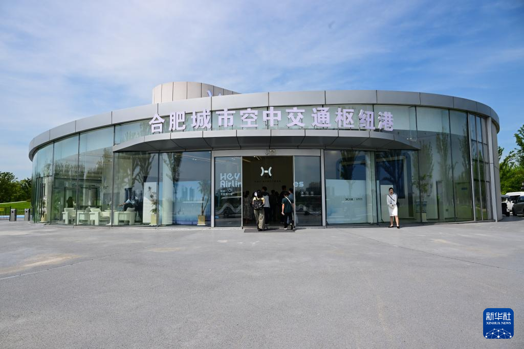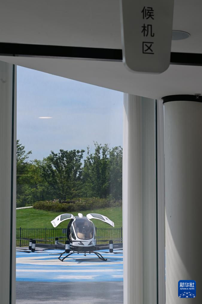 7月2日,一架電動(dòng)垂直起降飛行器(eVTOL)停放在合肥城市空中交通樞紐港。新華社記者 周牧 攝