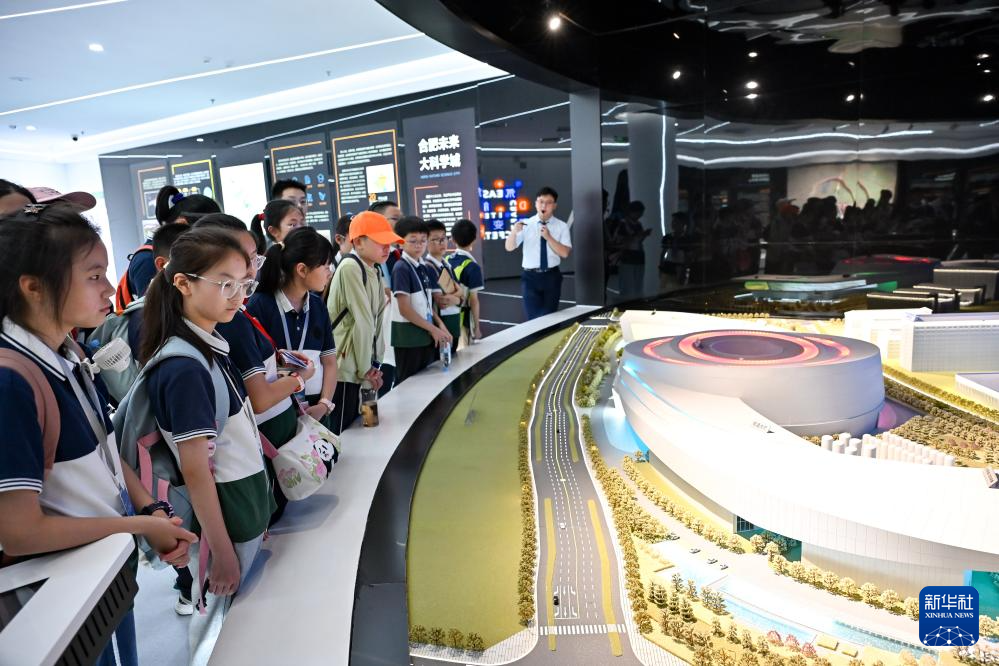 7月1日,學(xué)生們?cè)诰圩儎?chuàng)新展覽館內(nèi)的緊湊型聚變能實(shí)驗(yàn)裝置(BEST)模型前參觀學(xué)習(xí)。新華社記者 張鋮 攝