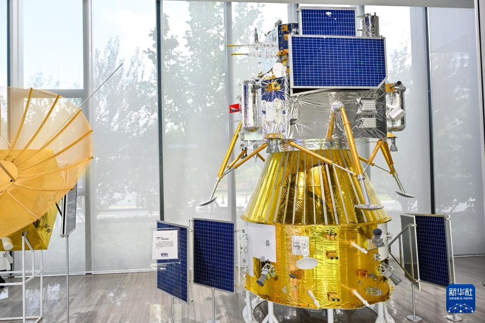 這是在深空探測(cè)實(shí)驗(yàn)室拍攝的嫦娥六號(hào)月球探測(cè)器模型(6月30日攝)。新華社記者 張鋮 攝