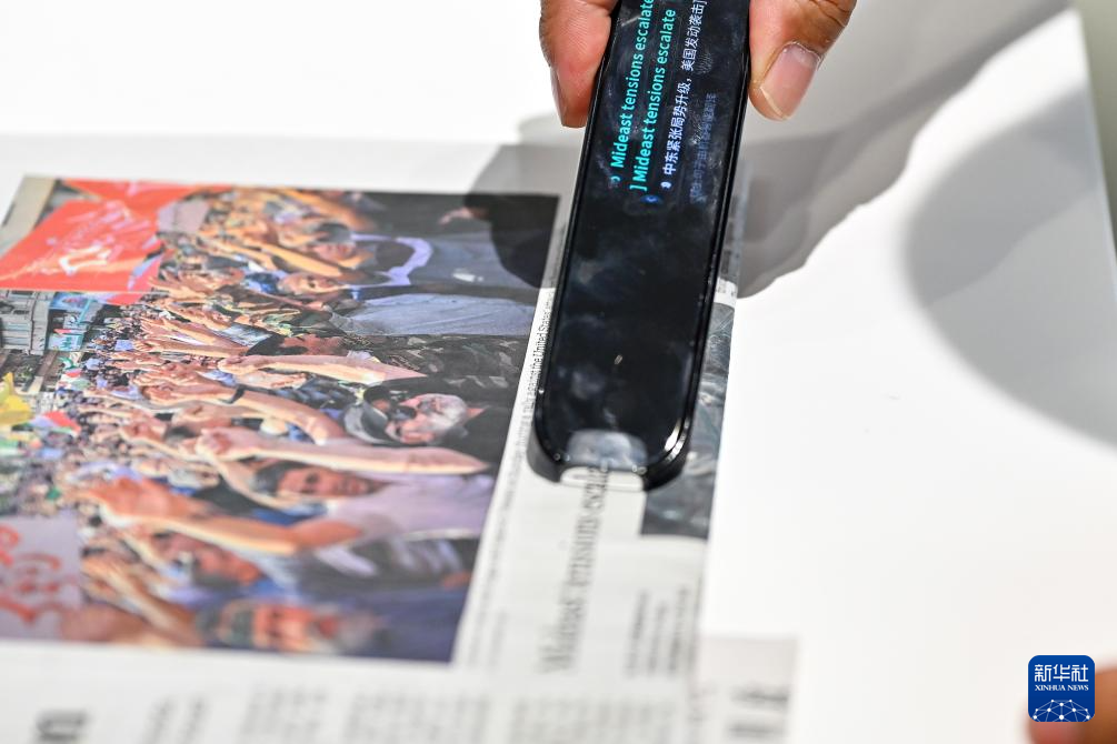 7月2日,一名觀眾在科大訊飛人工智能體驗(yàn)館體驗(yàn)一款詞典筆的翻譯功能。新華社記者 張鋮 攝