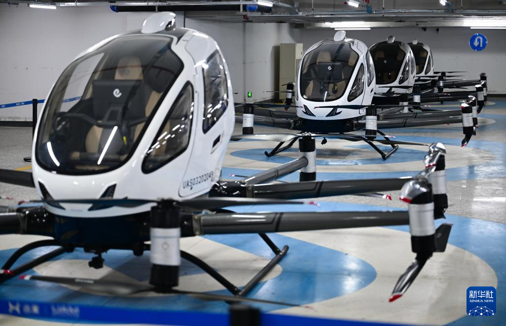 7月2日,在合肥駱崗公園,幾架電動(dòng)垂直起降飛行器(eVTOL)停放在充電機(jī)庫(kù)中。新華社記者 周牧 攝