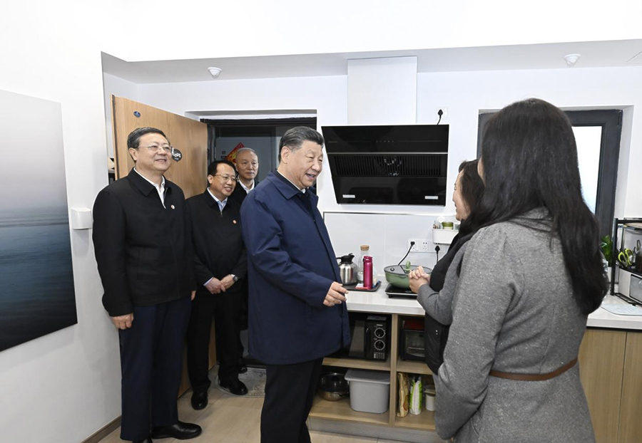 2023年11月29日,習(xí)近平總書記考察閔行區(qū)新時代城市建設(shè)者管理者之家。新華社記者 申宏 攝
