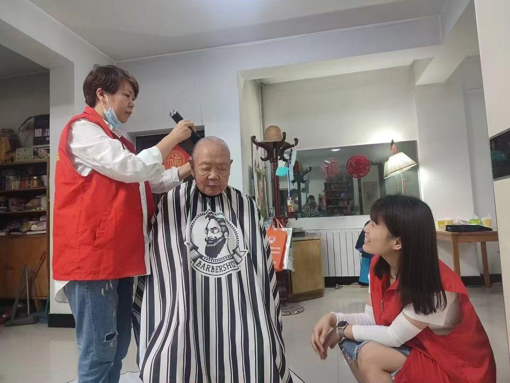 △陜西西安碑林區(qū)黃雁社區(qū)的工作人員和志愿者上門為留守老人提供剪發(fā)服務(wù)。