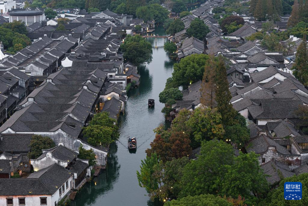 這是11月5日拍攝的烏鎮(zhèn)西柵景區(qū)(無人機照片)。新華社記者 黃宗治 攝