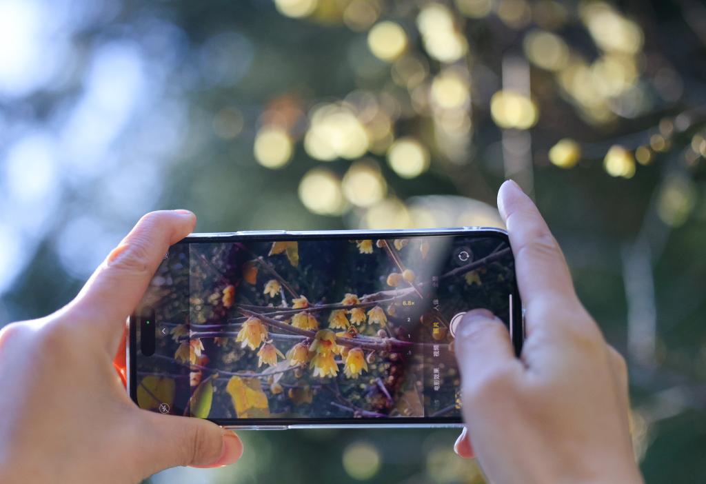 12月4日,游客在臥佛寺拍攝臘梅。近日,北京西山十方普覺寺(又名臥佛寺)的臘梅初開,吸引眾多游客前來賞花拍攝。新華社記者 殷剛 攝