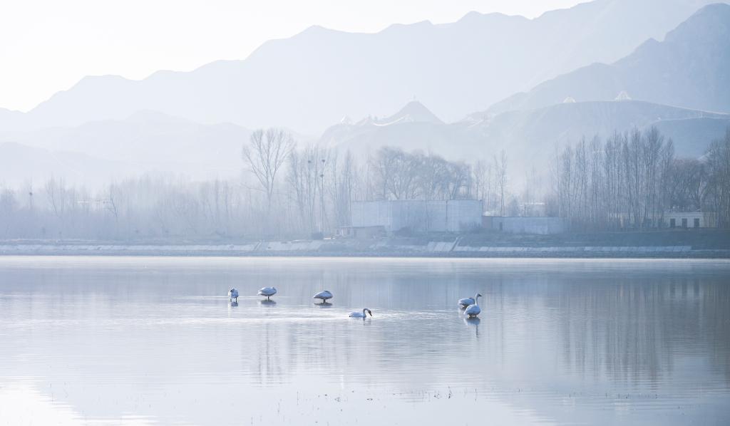 這是12月3日在化隆回族自治縣境內(nèi)的黃河邊拍攝的天鵝。新華社記者 齊芷玥 攝