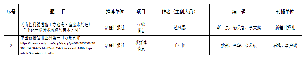 新疆日報社(新疆報業(yè)傳媒<集團>有限公司)推薦參加第35屆中國新聞獎(自薦作品初評)作品的公示