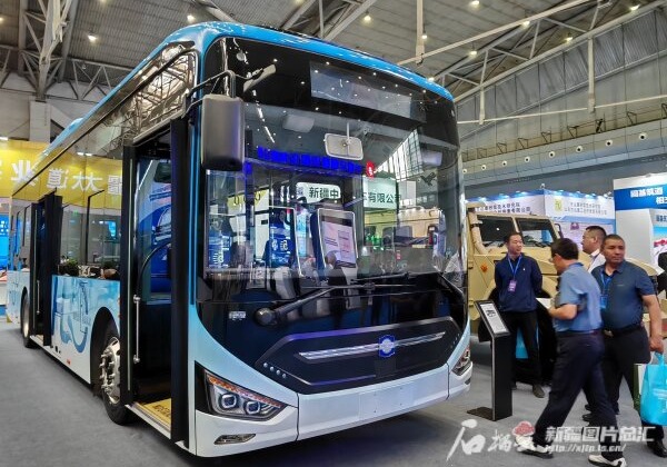 當(dāng)天上午,新疆中通客車有限公司展區(qū)內(nèi),4輛大小不一的汽車吸引了不少人走近觀看。記者留意到,這4輛汽車既有傳統(tǒng)燃油車輛,也有新能源汽車,其中一臺氫能源客車尤為“吸睛”。