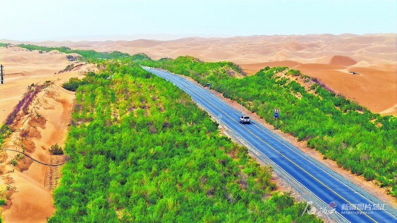 7月4日,在雨后的塔里木沙漠公路兩側(cè),被雨水沖刷過的防護林散發(fā)著勃勃生機,成為沙海中一道壯美景觀。近年來,塔里木油田通過在沙漠公路沿線建設(shè)光伏電站替代柴油機發(fā)電,打造出我國首條零碳沙漠公路。 汪濤攝