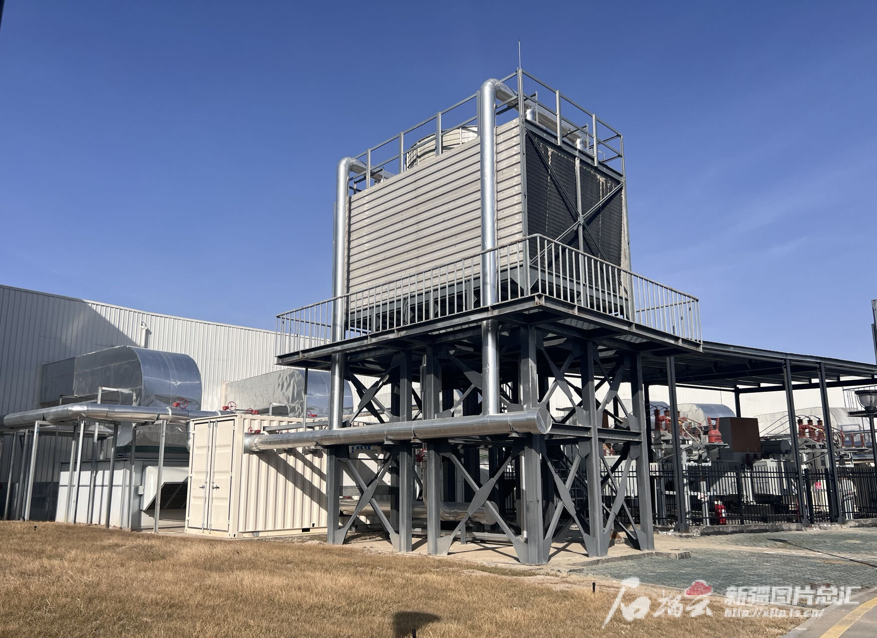 克拉瑪依云計(jì)算產(chǎn)業(yè)園區(qū)碳和水冷數(shù)據(jù)中心機(jī)房外部的冷卻塔。天山網(wǎng)-新疆日?qǐng)?bào)記者 康顥嚴(yán)攝