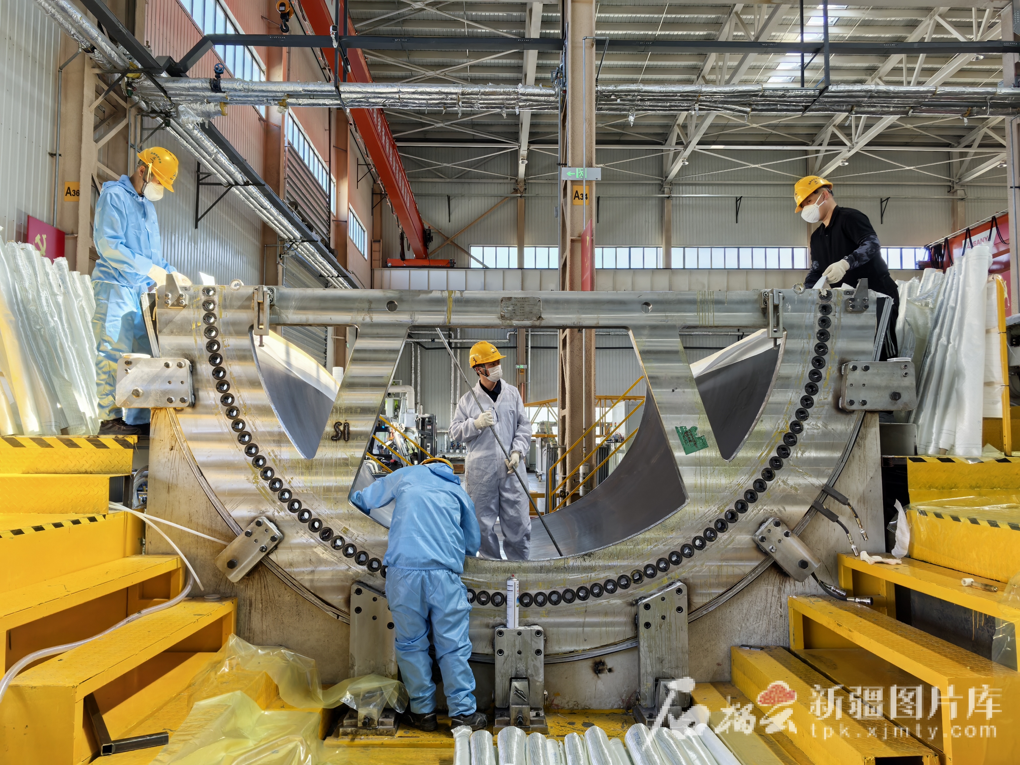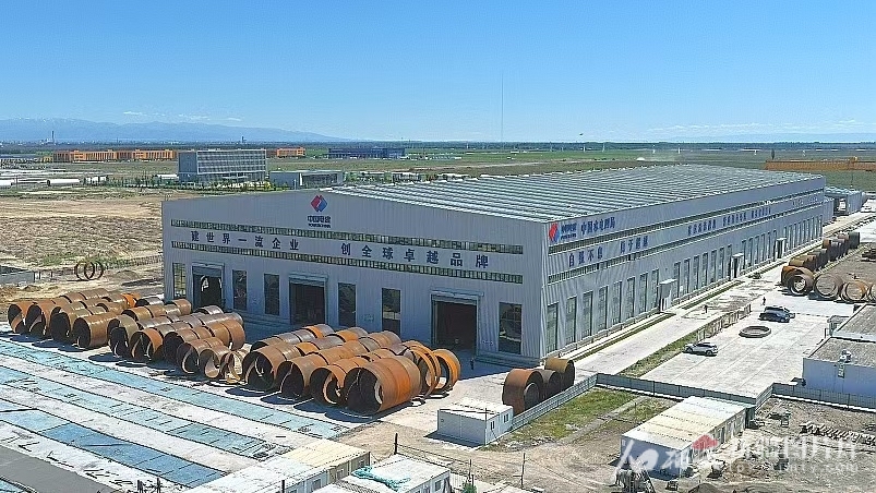 與三一(塔城)風(fēng)電設(shè)備有限公司相鄰的中國水電四局(塔城)能源裝備有限公司內(nèi),生產(chǎn)區(qū)的空地上擺滿了大小不一的分片式塔筒。公司總工程師汪五十四正俯身仔細檢查6米直徑的分片式塔筒,“每段25米長的塔筒,焊接精度誤差必須嚴格控制在毫米級。”他指著工人正在焊接的縱向鏈接法蘭說。該企業(yè)于2023年落地塔城試驗區(qū)先行發(fā)展區(qū),規(guī)劃年產(chǎn)風(fēng)力發(fā)電機塔筒400套。
