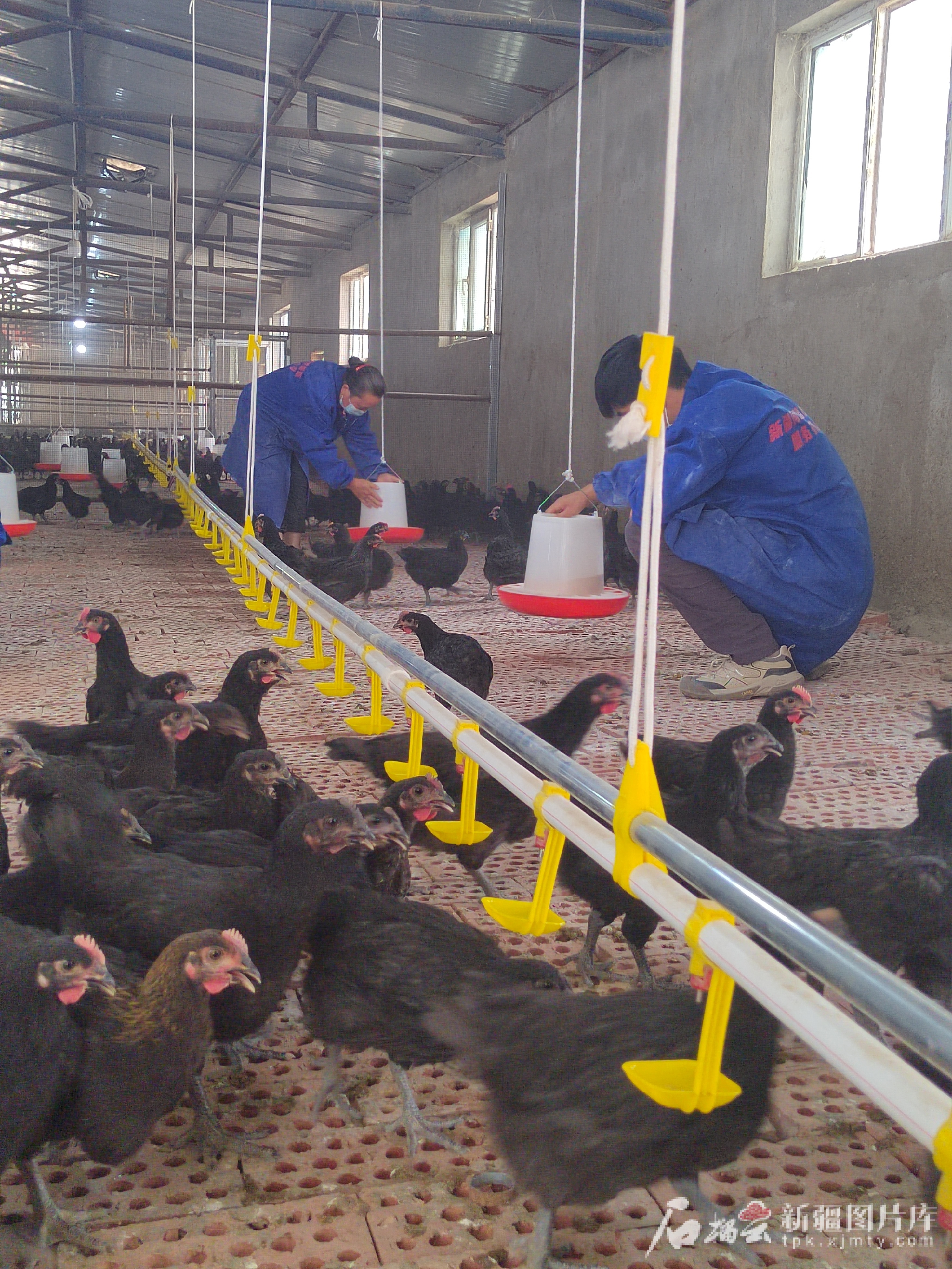 6月19日,于田縣科克亞鄉(xiāng)色日克奧依村養(yǎng)殖場(chǎng),工作人員在雞舍內(nèi)精心投喂飼料。藺懷磊攝
