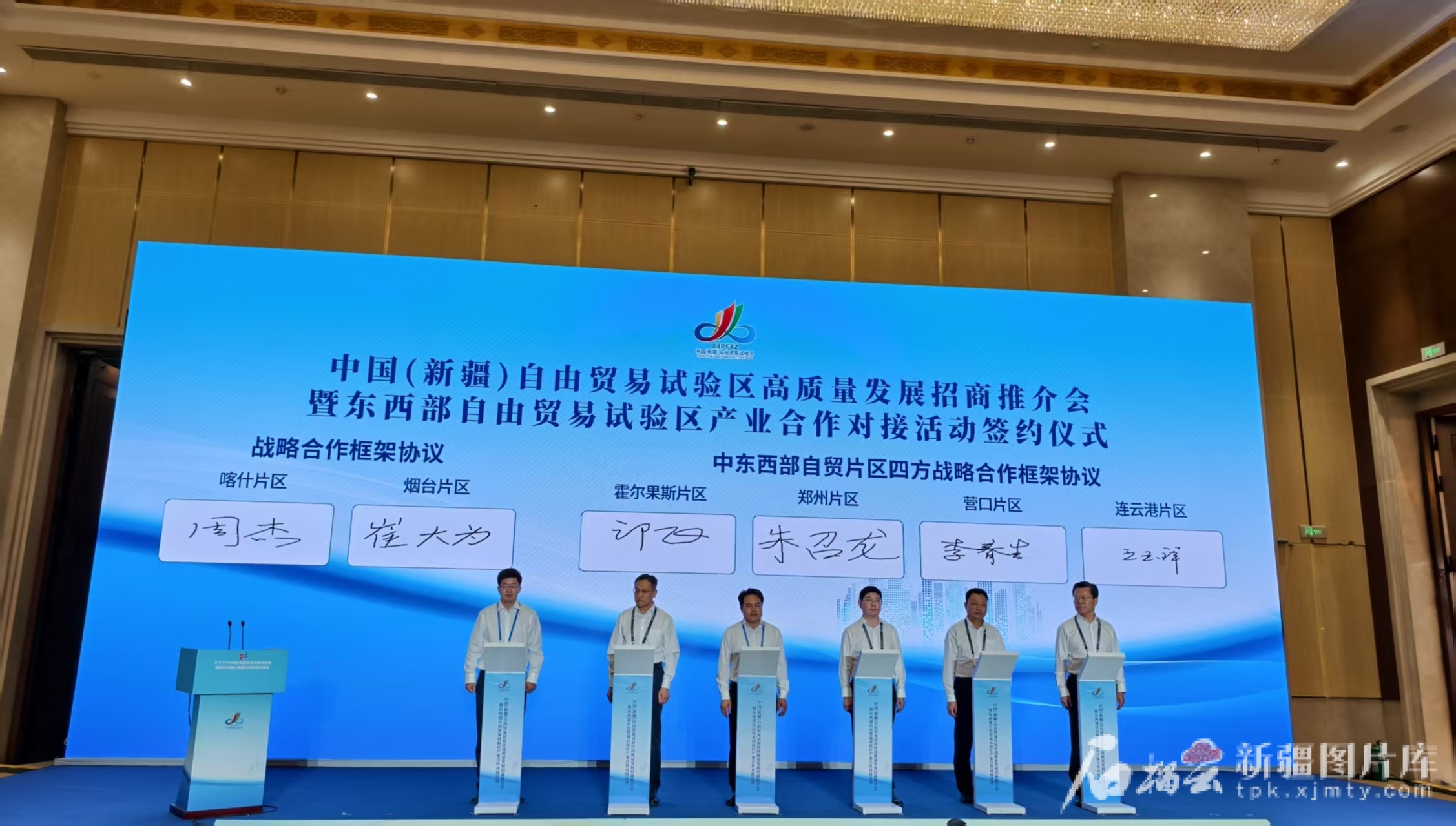活動現(xiàn)場,新疆自貿(mào)試驗區(qū)工作辦公室與浙江自貿(mào)試驗區(qū)工作辦公室簽署合作協(xié)議,烏魯木齊片區(qū)與浙江金義片區(qū)、河南鄭州片區(qū)以及北京市順義區(qū)商務局牽手,喀什片區(qū)與山東煙臺片區(qū)結盟,霍爾果斯片區(qū)與河南鄭州片區(qū)、遼寧營口片區(qū)、江蘇連云港片區(qū)達成四方戰(zhàn)略合作,東西部自貿(mào)試驗區(qū)協(xié)同發(fā)展網(wǎng)絡進一步織密。