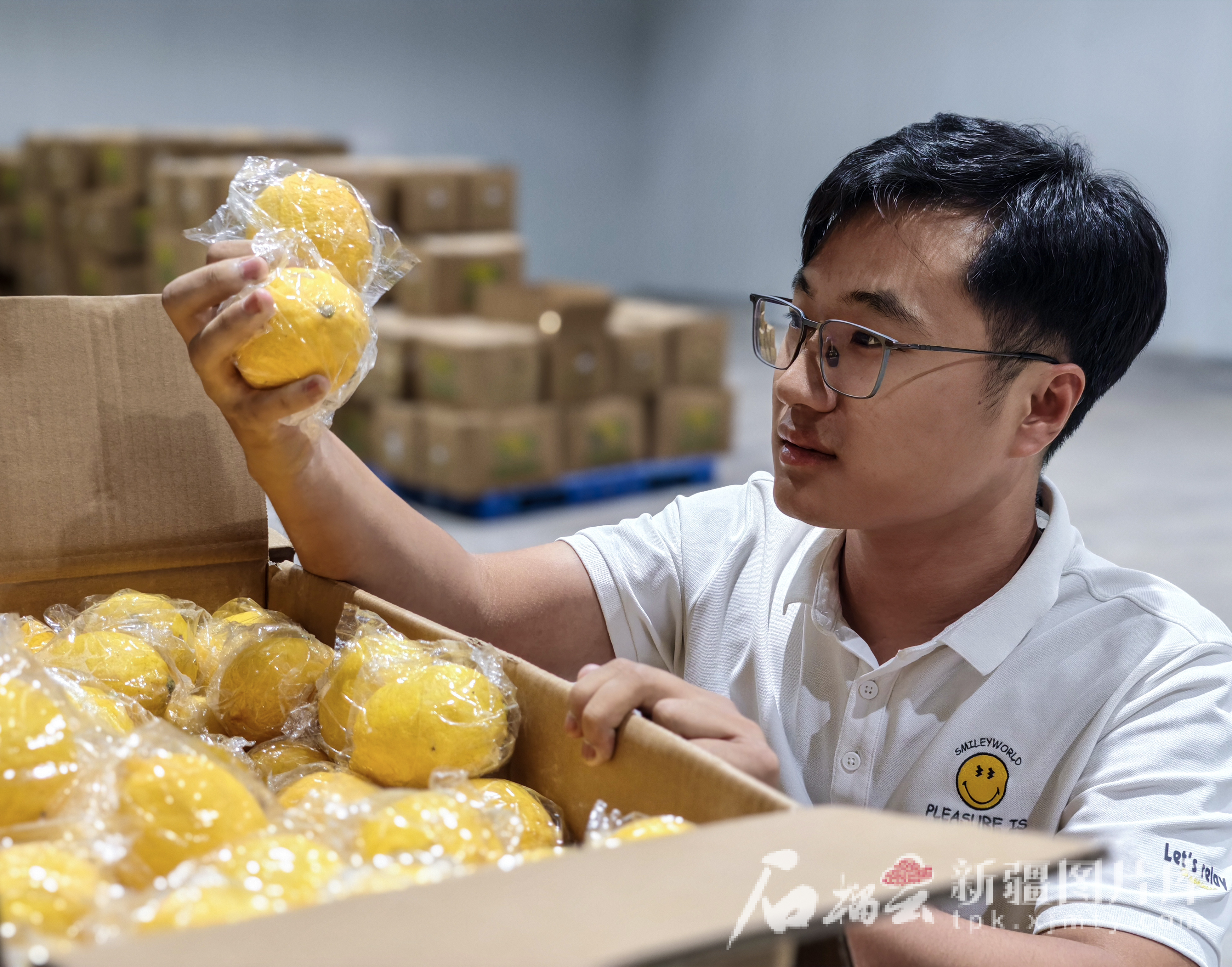 6月26日,在精河國際公鐵聯(lián)運綜合物流園,工作人員在園內(nèi)的冷鏈倉庫檢查即將出口的檸檬。