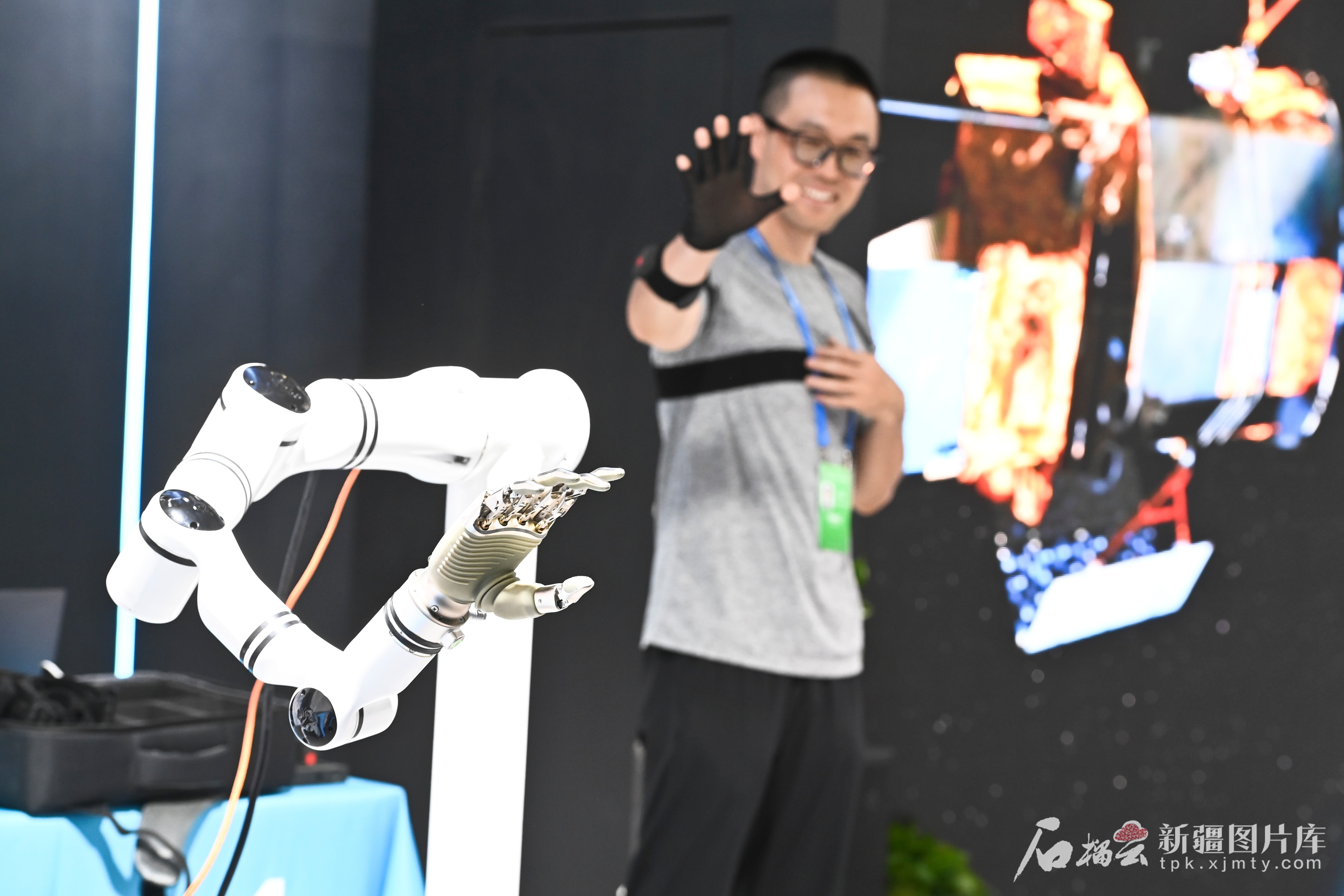 6月27日,工作人員操控動作捕捉器遙控機器人。天山網(wǎng)-新疆日報記者湯永攝