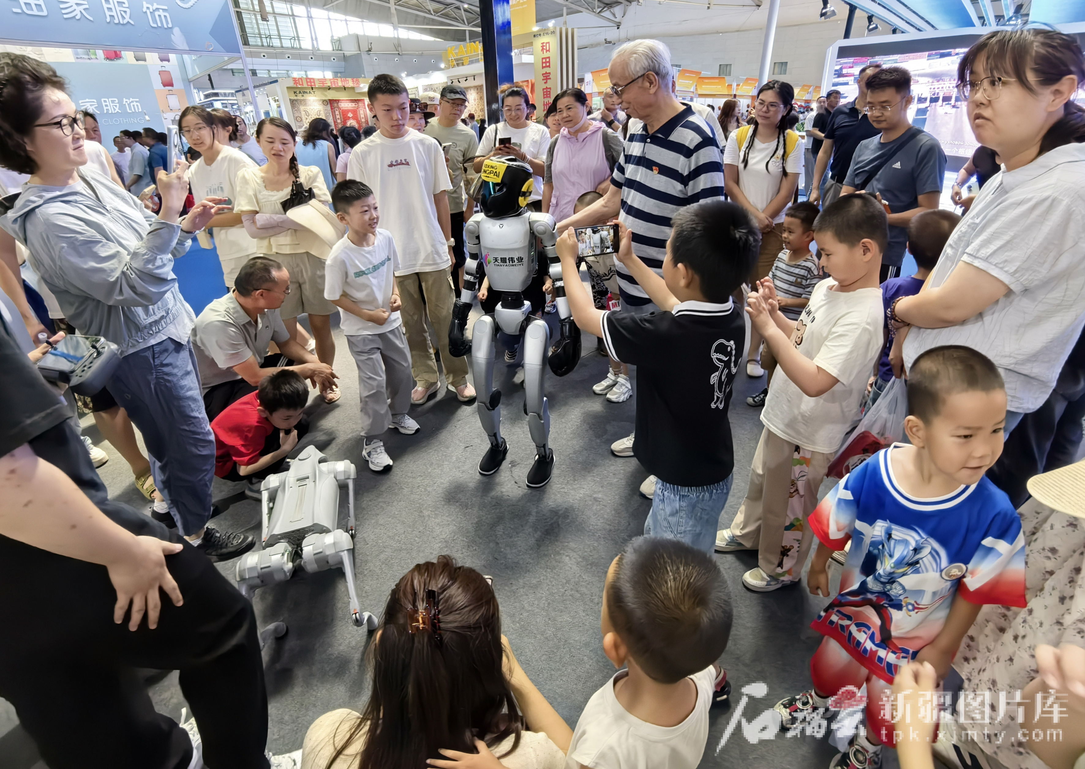 6月29日,在2025(中國)亞歐商品貿(mào)易博覽會(huì)上,參觀者和拳擊機(jī)器人互動(dòng)。
