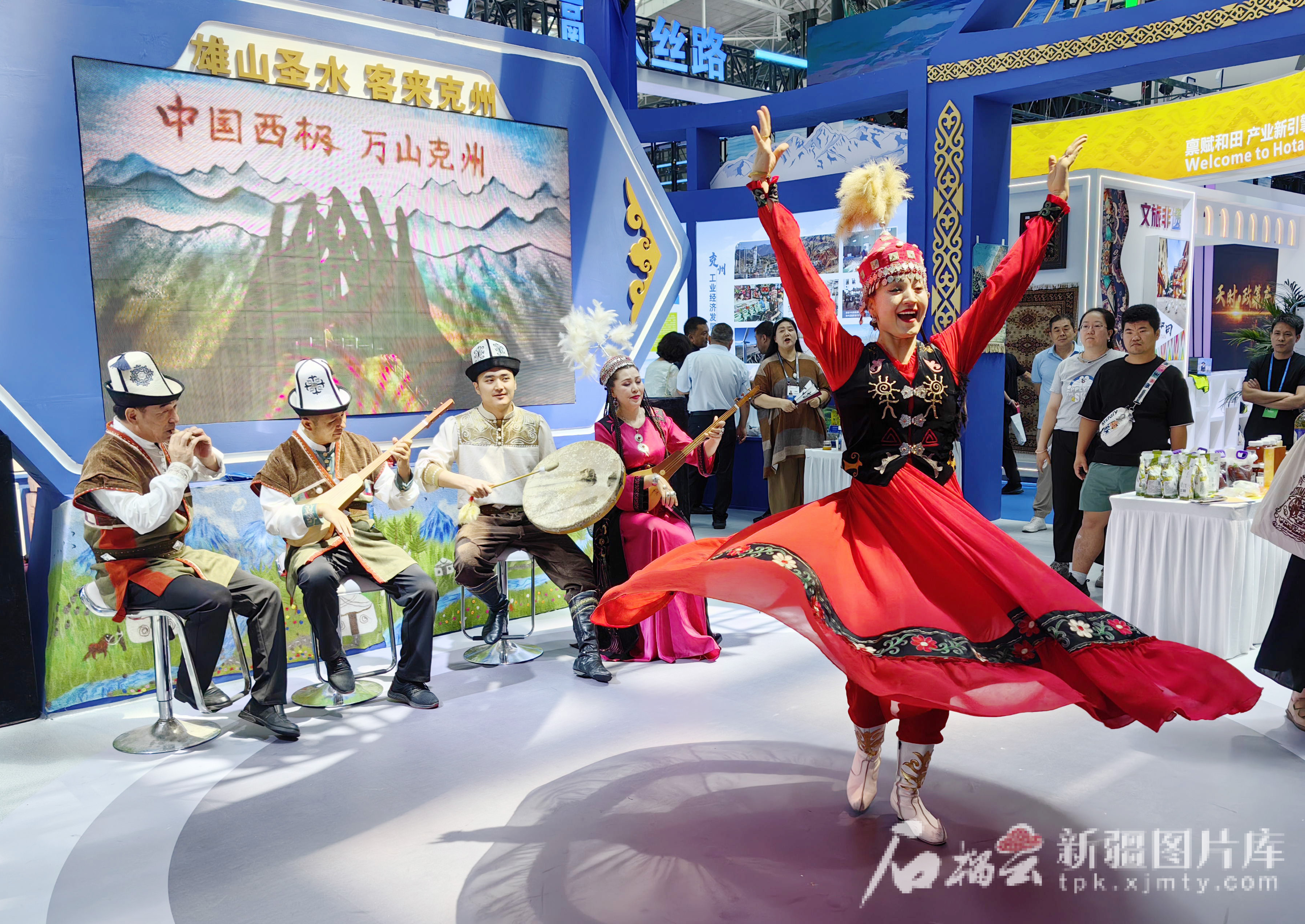 6月29日,在2025(中國)亞歐商品貿(mào)易博覽會(huì)上,演員在克孜勒蘇柯爾克孜自治州展位前表演舞蹈。