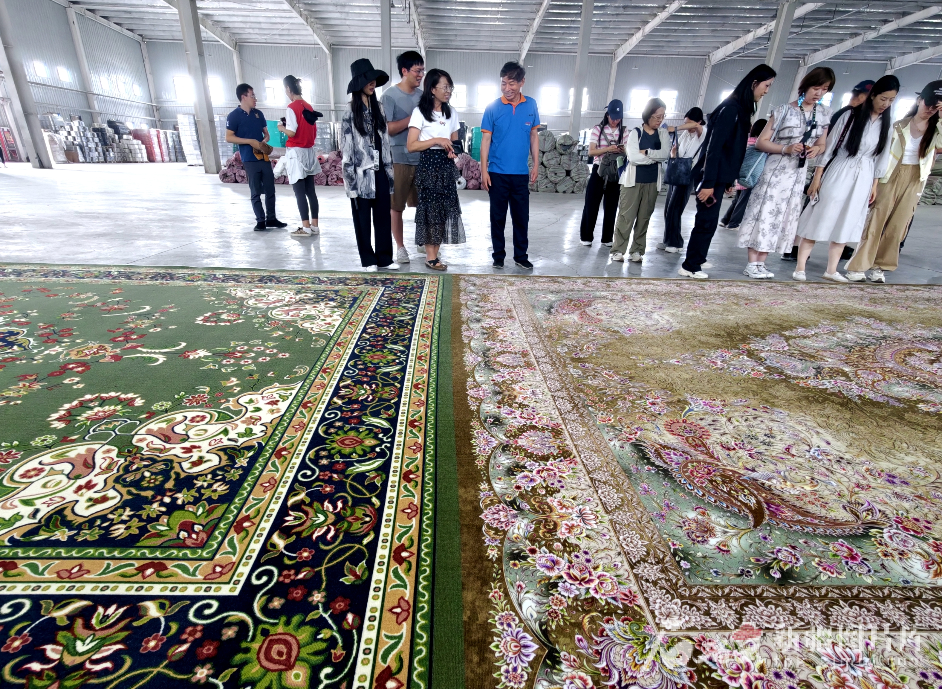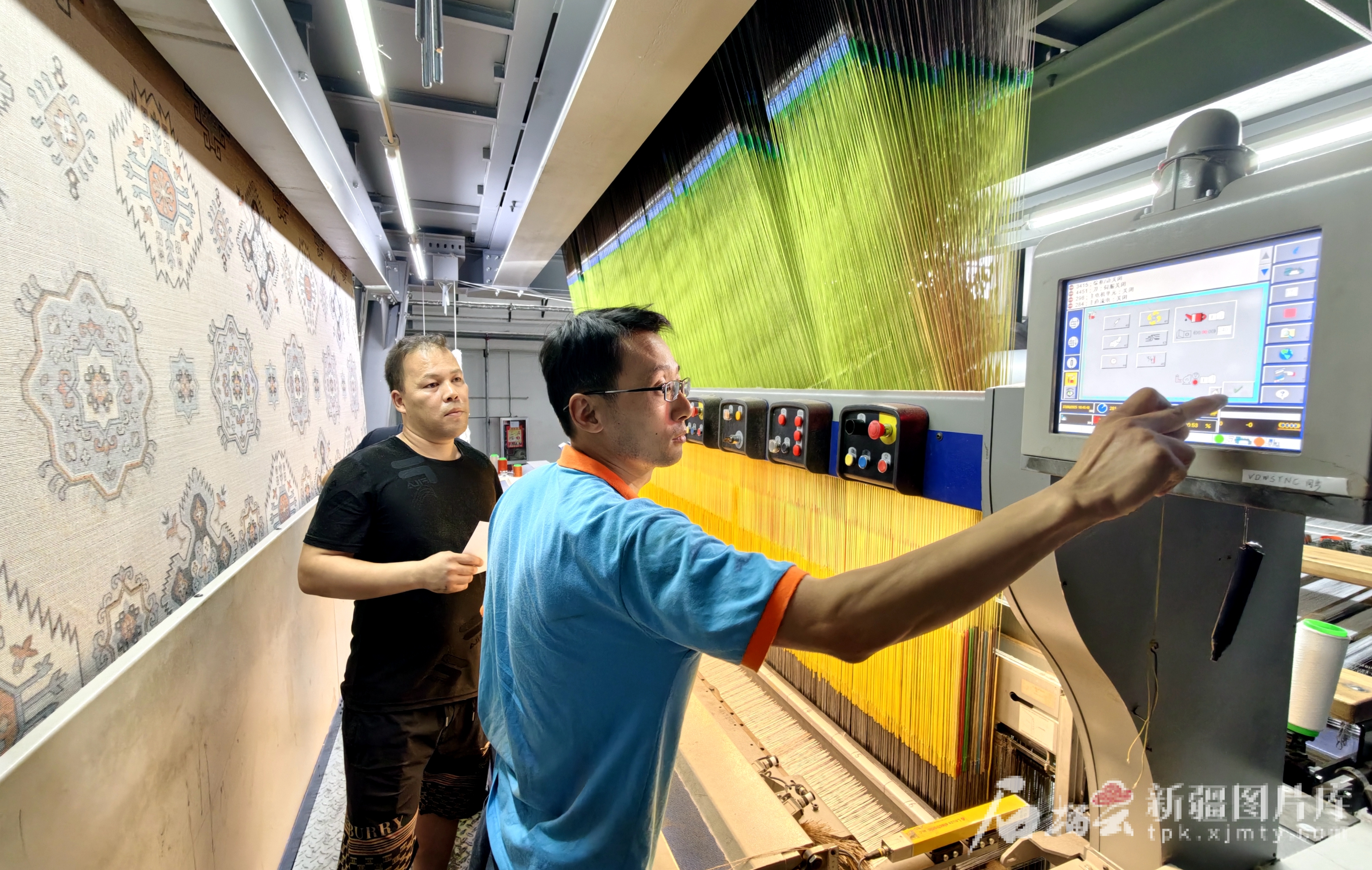 6月28日,沿著高速看新疆采訪團在位于沙灣市的新疆天目湖地毯織造有限公司采訪。