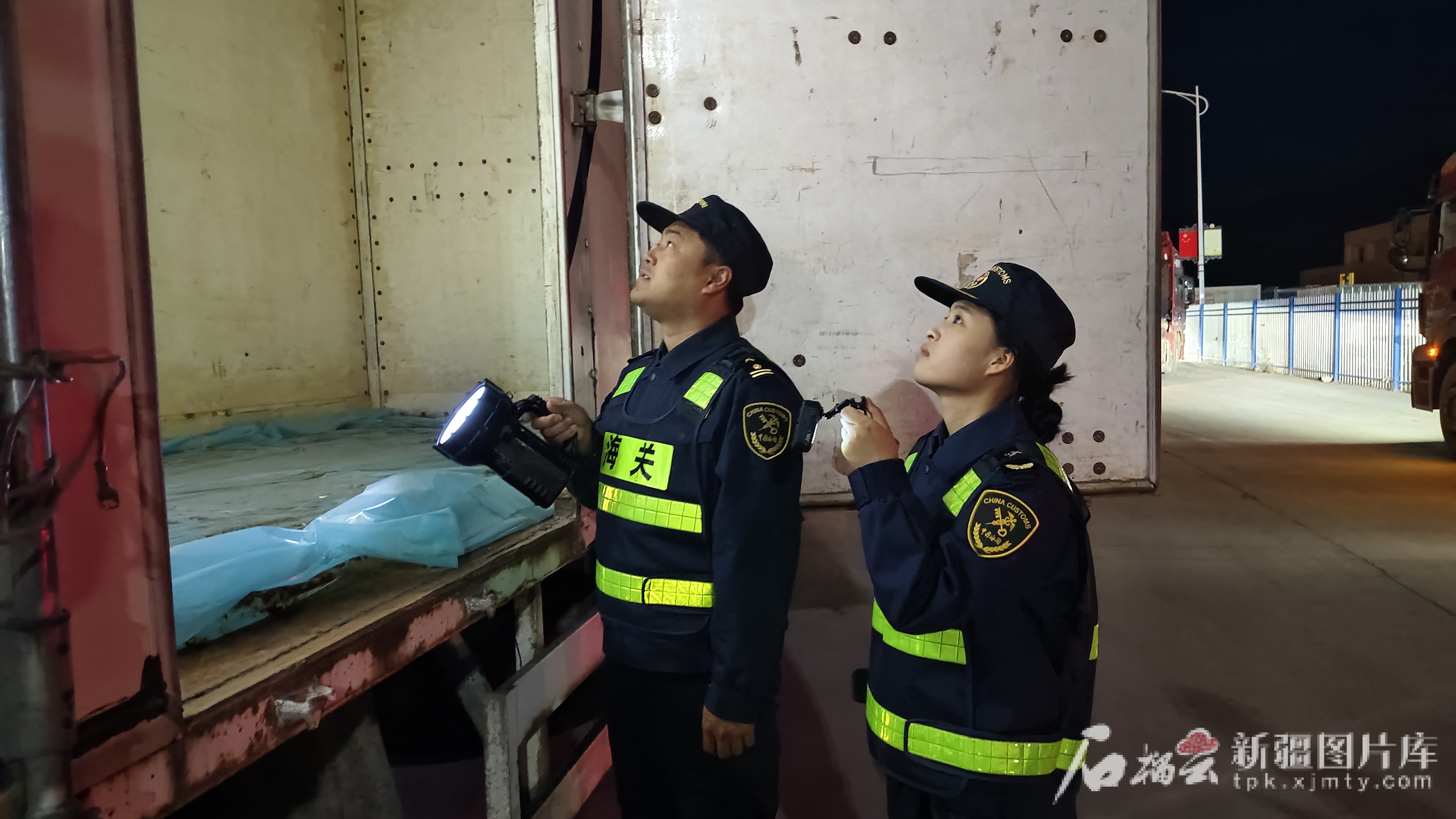 6月26日,伊爾克什坦海關(guān)關(guān)員開(kāi)展夜間作業(yè),驗(yàn)放出境車輛。西加艾提·阿布力米提 攝