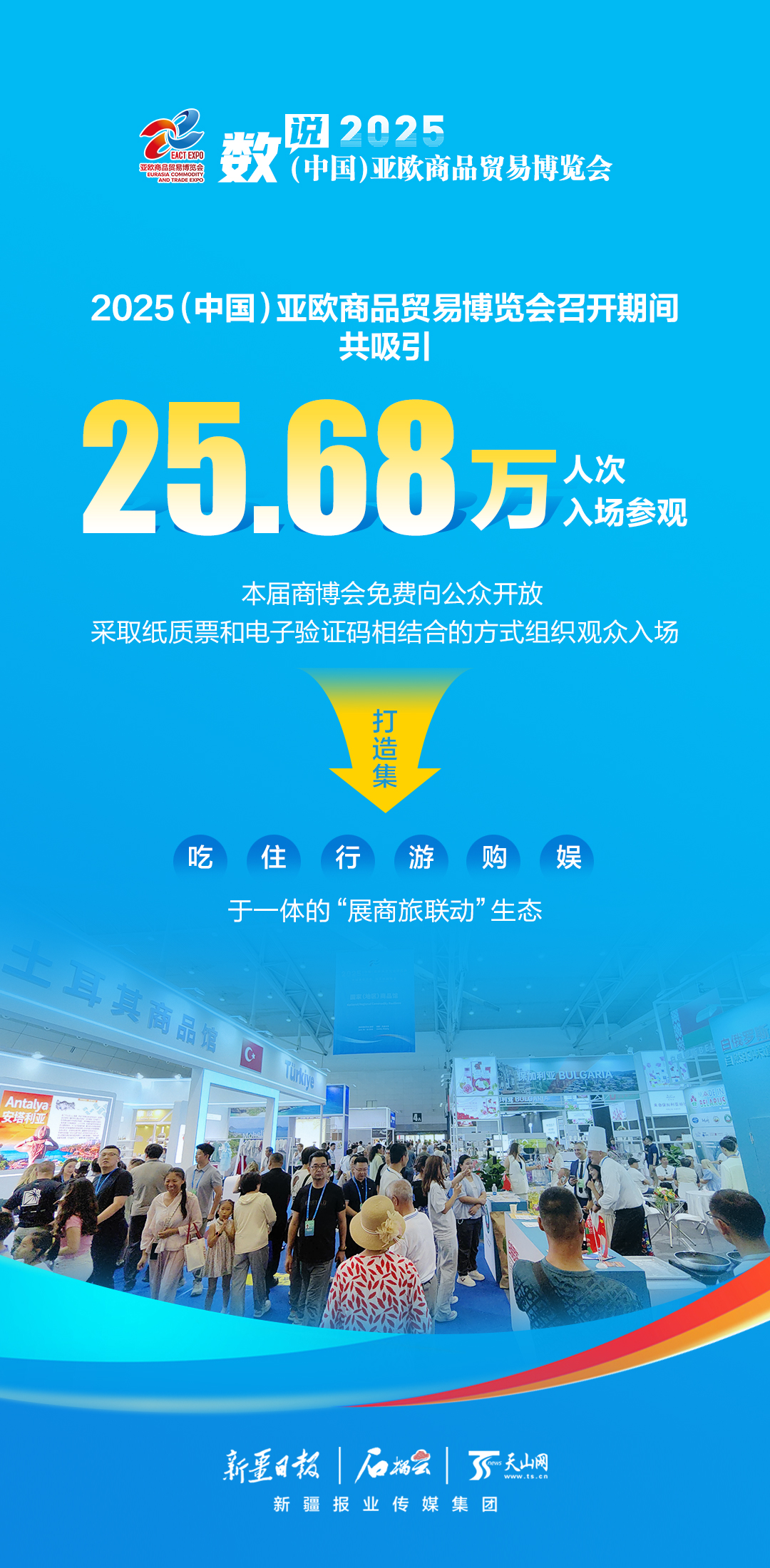 2025(中國)亞歐商品貿(mào)易博覽會召開期間,共吸引25.68萬人次入場參觀。