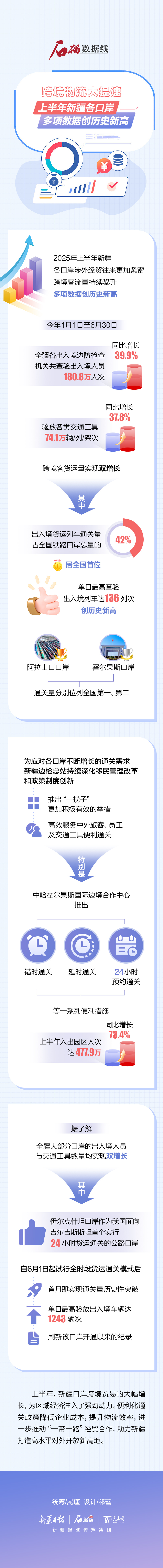 2025年上半年新疆各口岸涉外經(jīng)貿(mào)往來(lái)更加緊密,跨境客流量持續(xù)攀升,多項(xiàng)數(shù)據(jù)創(chuàng)歷史新高。