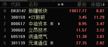 7月9日新疆板塊股價(jià)漲幅排名(來自東方財(cái)富)。