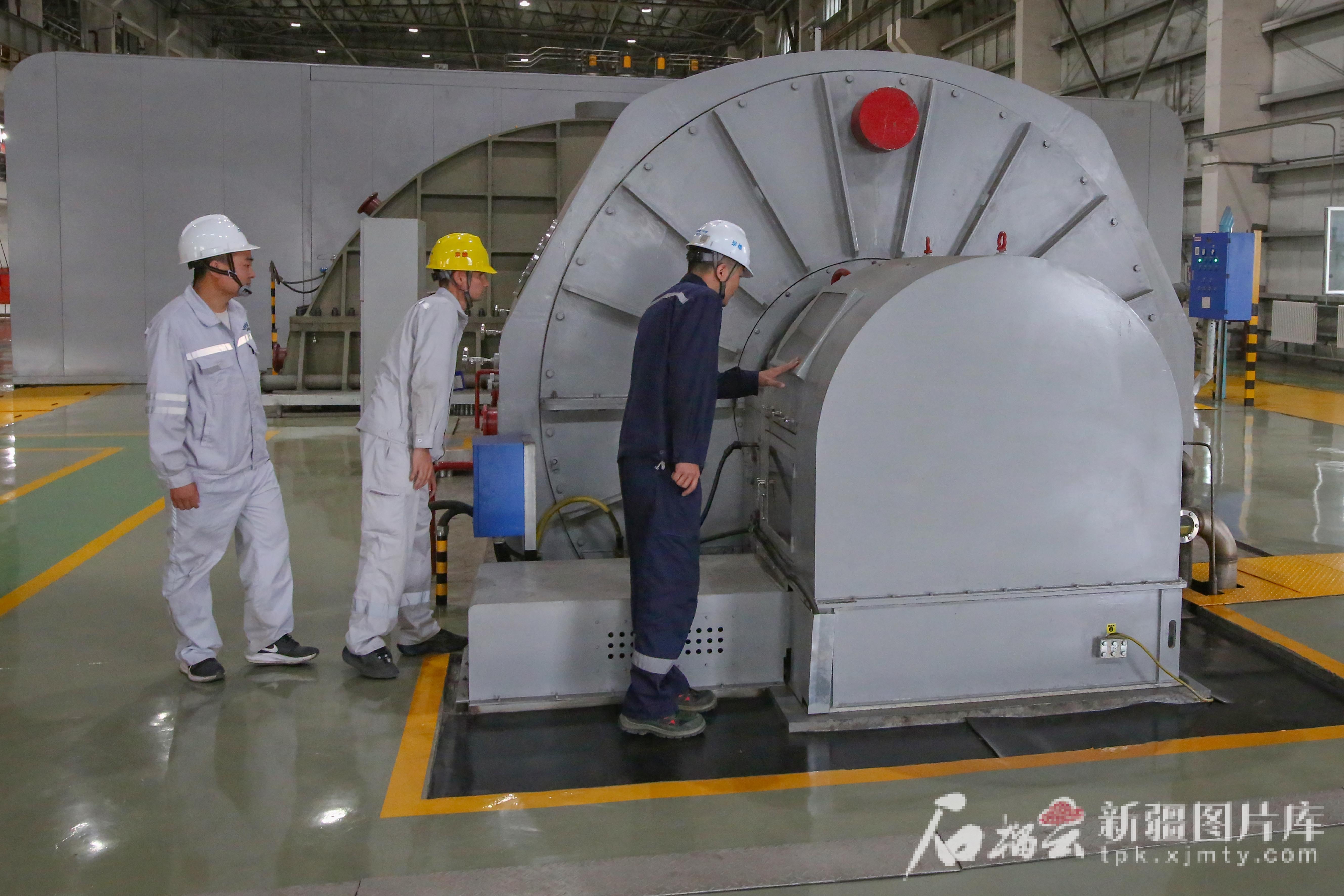 7月8日,技術(shù)員在新疆新伊碳能環(huán)保科技股份有限公司尾氣發(fā)電廠車間查看設(shè)備運(yùn)行情況。