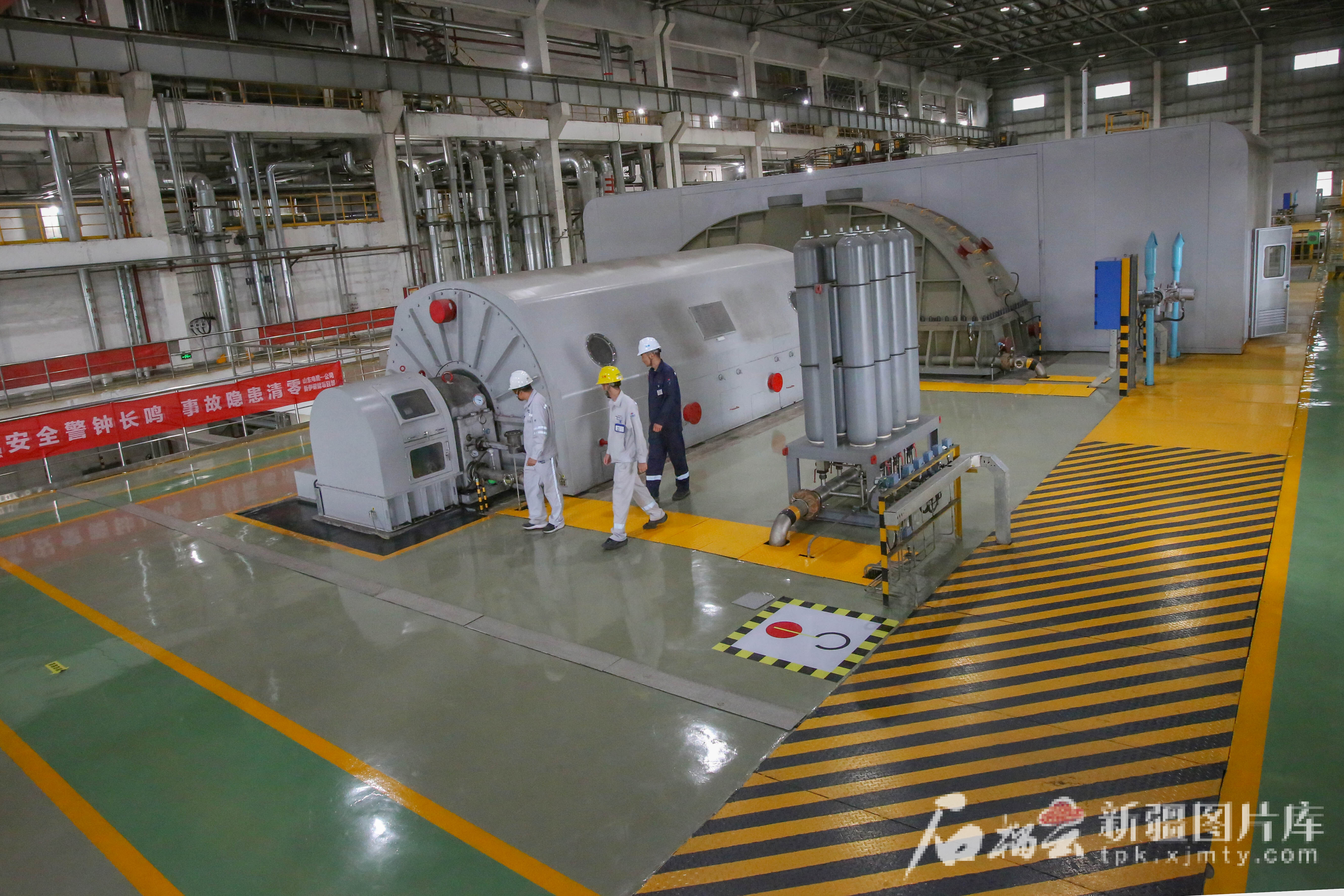 7月8日,工人在新疆新伊碳能環(huán)保科技股份有限公司尾氣發(fā)電廠車間巡查設(shè)備運(yùn)行情況。