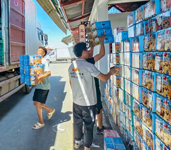 “現(xiàn)在我們網(wǎng)點每天蟠桃的快遞量在4000件左右,從這里至少發(fā)兩輛9.6米長的快遞車?!蹦率苓叴虬吔榻B,今年,公司在一四三團新增了4個攬收點,攬收點總數(shù)已達13個,34名快遞員駐點,確保種植戶鮮采的蟠桃第一時間完成攬收與發(fā)運。每日午后,集中將蟠桃運送至轉(zhuǎn)運中心,搭載當日全貨機直飛湖北省鄂州花湖國際機場。依托高效中轉(zhuǎn)網(wǎng)絡(luò),可實現(xiàn)全國85%的城市蟠桃次日送達。