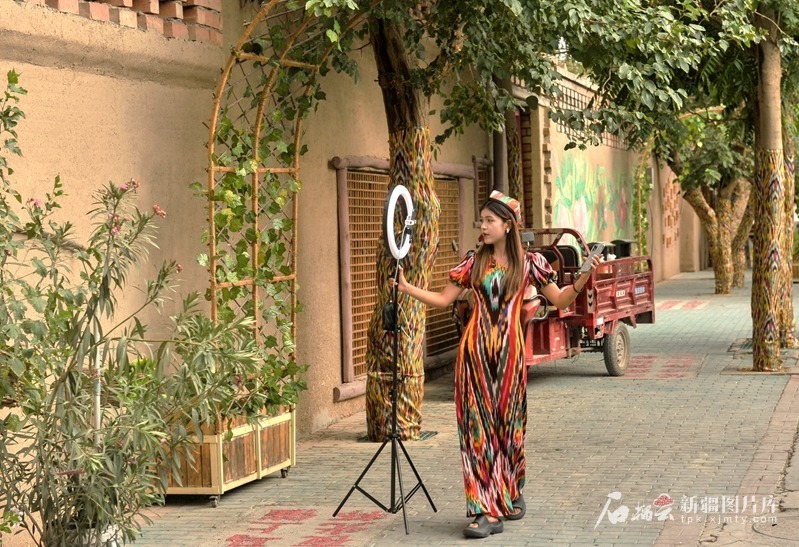 7月8日,新城西門(mén)村村民通過(guò)網(wǎng)絡(luò)直播介紹家鄉(xiāng)。 天山網(wǎng)-新疆日?qǐng)?bào)記者王禹攝