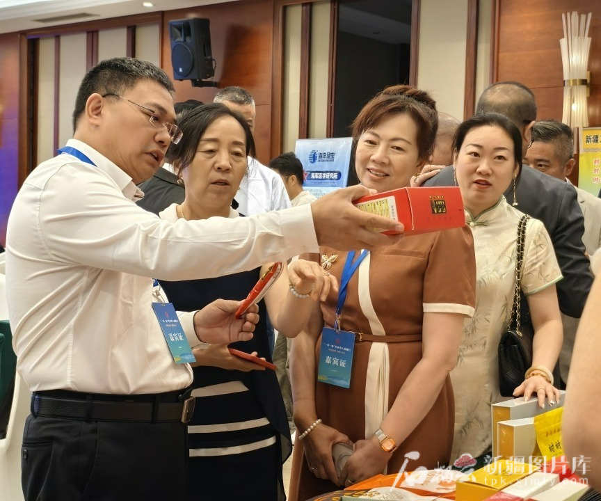7月19日,“一帶一路”華僑華人新疆行推介交流會(huì)在烏魯木齊舉辦,圖為華僑華人在了解新疆產(chǎn)品。記者 李嘉妮攝