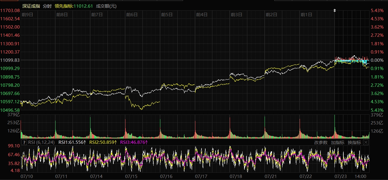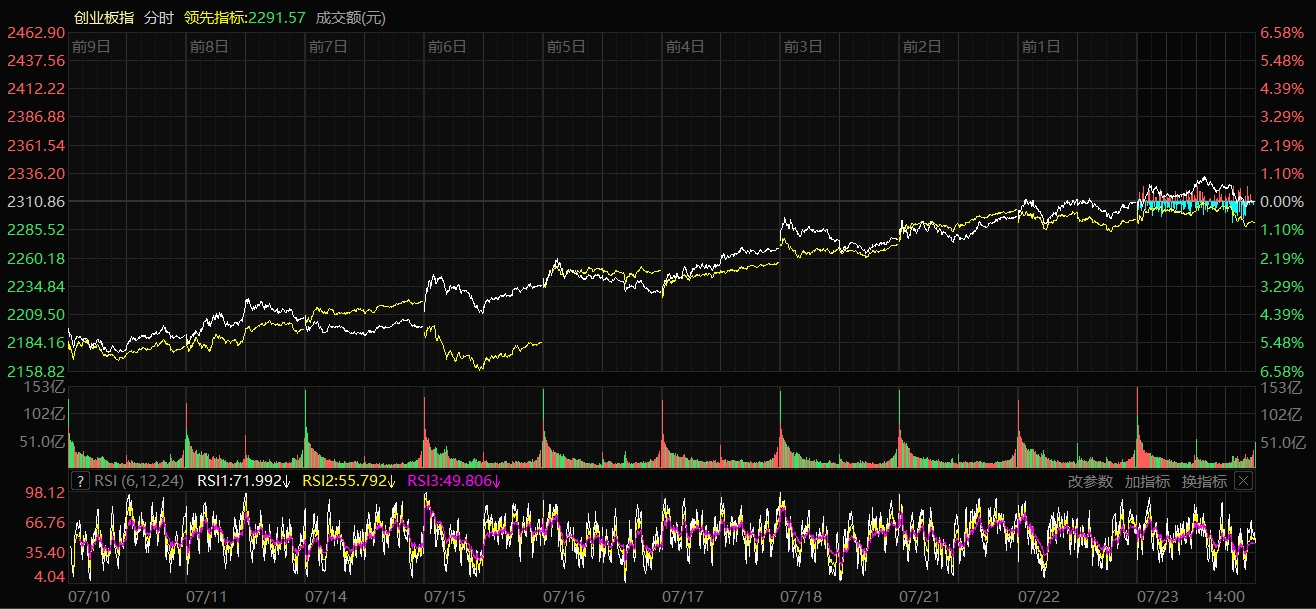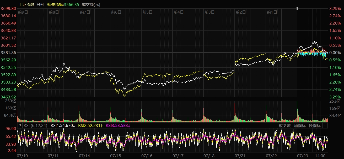 天山網(wǎng)-新疆日?qǐng)?bào)訊(記者趙悅報(bào)道)7月23日,A股三大指數(shù)沖高回落,上證指數(shù)3600點(diǎn)得而復(fù)失。截至收盤,上證指數(shù)漲0.01%,報(bào)收3582.30點(diǎn);深證成指跌0.37%,報(bào)收11059.04點(diǎn);創(chuàng)業(yè)板指跌0.01%,報(bào)收2310.67點(diǎn)。滬深兩市成交額達(dá)18646億元,較昨日小幅縮量284億元。