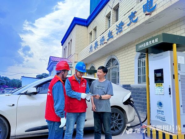 國網(wǎng)伊犁伊河供電有限責(zé)任公司員工為充電車主介紹使用注意事項(xiàng)(資料圖)。國網(wǎng)新疆電力有限公司供圖