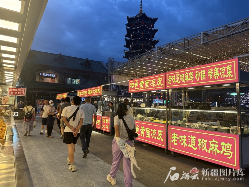 7月16日晚,市民游客在昌吉小吃街逛吃美食。劉華攝