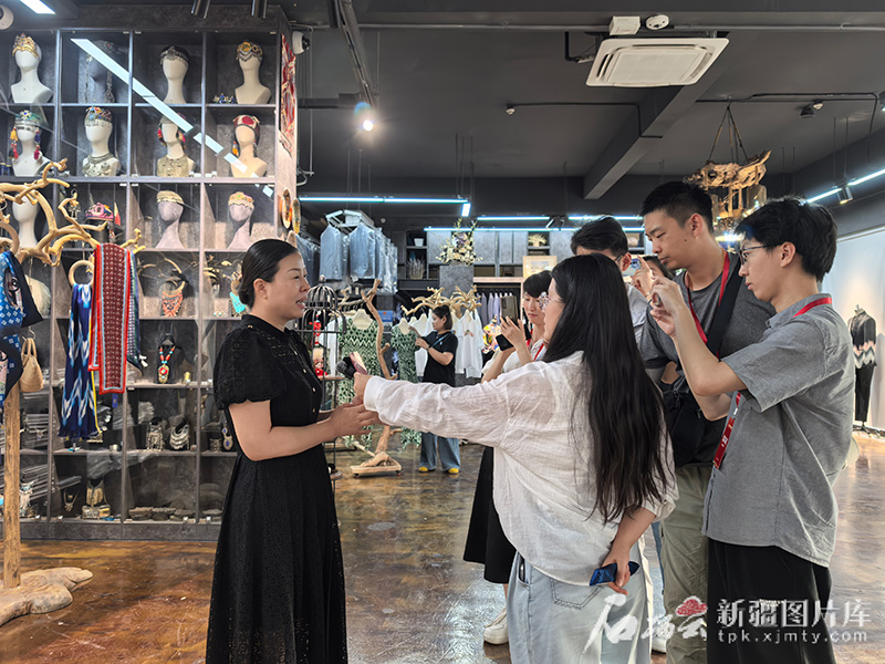 7月23日,“高質(zhì)量發(fā)展看新疆”網(wǎng)絡(luò)主題活動(dòng)團(tuán)隊(duì)的媒體記者在采訪新疆樓蘭制衣有限責(zé)任公司總經(jīng)理陶陶。天山網(wǎng)-新疆日?qǐng)?bào)記者 于江艷攝