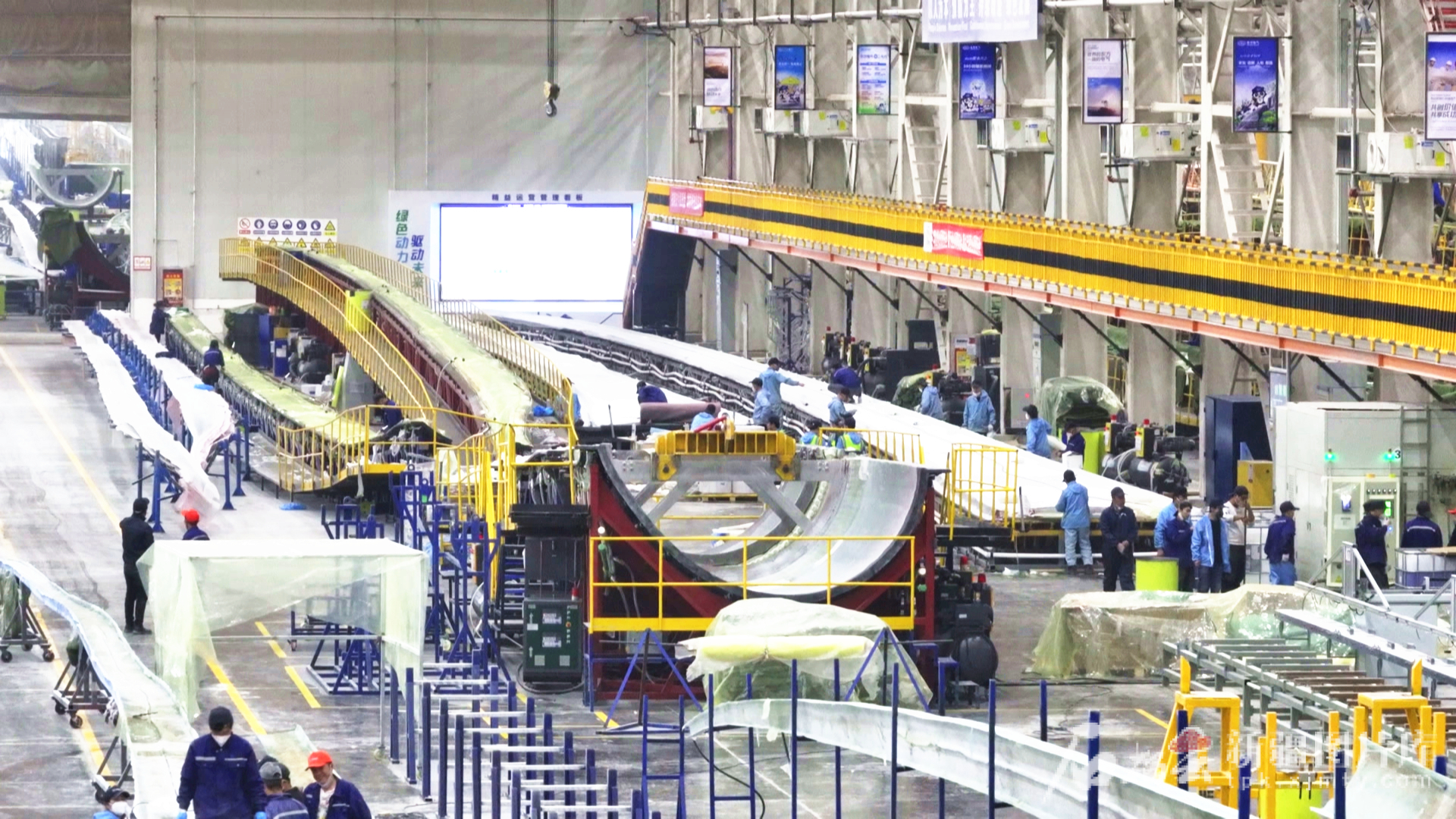 3月20日,在新疆東方風(fēng)電新能源有限公司現(xiàn)代化車間,工人們正在加緊生產(chǎn)風(fēng)機(jī)葉片。王夢(mèng)君攝