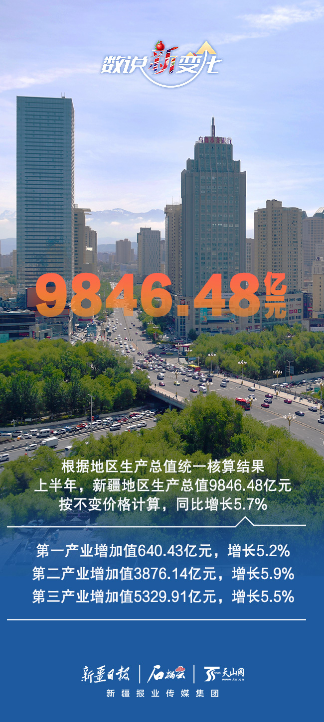 7月24日,上半年新疆經(jīng)濟(jì)答卷出爐:上半年,新疆地區(qū)生產(chǎn)總值9846.48億元,按不變價(jià)格計(jì)算,同比增長5.7%。上半年,新疆經(jīng)濟(jì)運(yùn)行延續(xù)穩(wěn)中向好發(fā)展態(tài)勢(shì),展現(xiàn)出強(qiáng)大韌性和活力。請(qǐng)跟隨這組海報(bào),一起來看看吧。