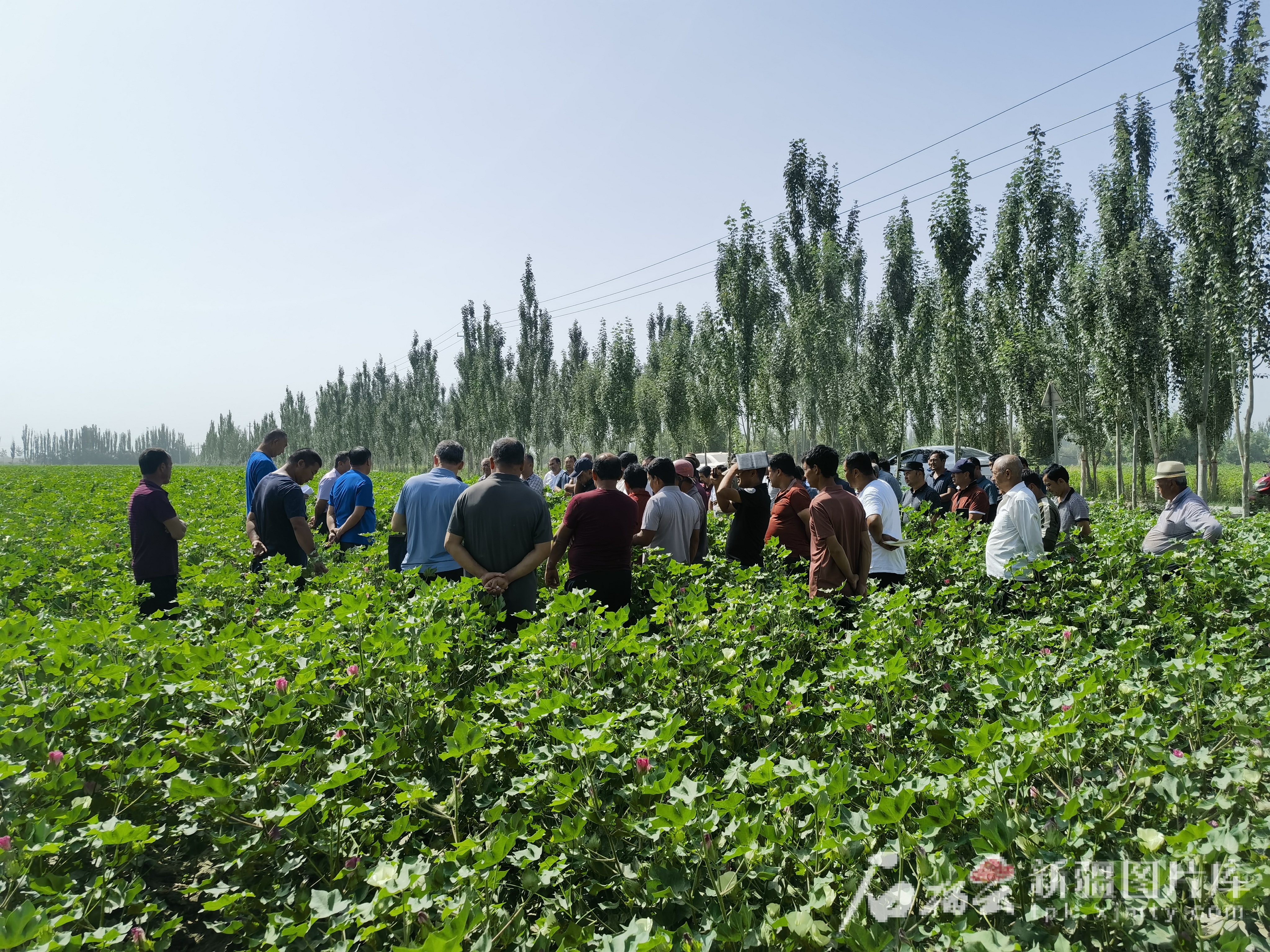 7月3日,阿扎特巴格鎮(zhèn)組織種植大戶召開棉花打頂技術(shù)指導(dǎo)現(xiàn)場會。葛平助供圖