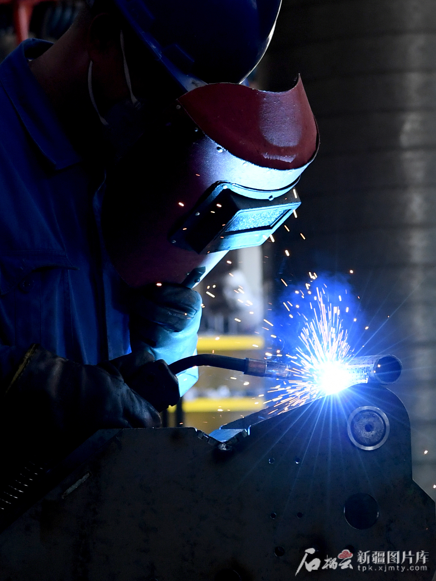 7月29日,新疆缽施然智能農(nóng)機股份有限公司工人在焊接農(nóng)機配件。